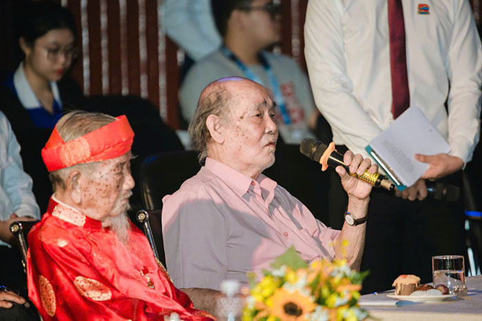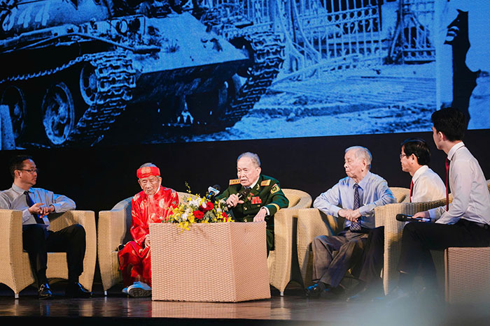 Trong buổi giao lưu, Anh hùng Lực lượng vũ trang Tư Cang dù đã 97 tuổi vẫn nhớ và kể vanh vách những ngày tháng lịch sử 30-4 tại TP.HCM của 50 năm trước.