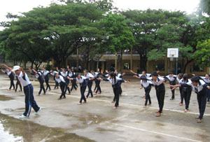 Học sinh Trường THPT Số 1 Nghĩa Hành học bơi trên cạn