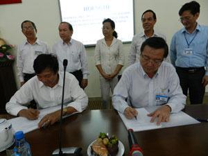 Giám đốc Sở GD-ĐT TP.HCM Lê Hồng Sơn và Hiệu trưởng Trường ĐH Sư phạm TP.HCM Lê Kim Hồng ký biên bản thỏa thuận hợp tác đào tạo và tuyển dụng giáo viên