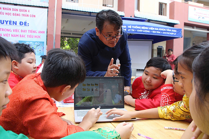 Giờ học tiếng Anh dành cho học sinh Trường Tiểu học Đặng Trần Côn (quận 4) sinh động, hấp dẫn khi giáo viên mạnh dạn sử dụng các công cụ AI tạo trò chơi, video, âm thanh mang đến giờ học trực quan, hiệu quả.