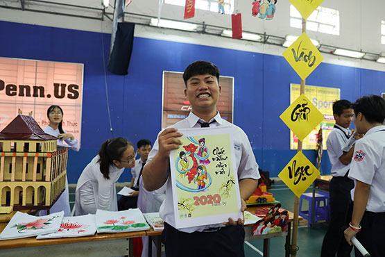 “Trong thời kỳ đất nước hội nhập, công nghệ 4.0 lên ngôi, câu hỏi đặt ra cho những người làm giáo dục là ngoài việc truyền đạt kiến thức thì làm thế nào để học sinh yêu thích, tự nguyện giữ gìn và lan tỏa những nét văn hóa truyền thống mà vẫn phát huy được tinh hoa văn hóa của nhân loại”, từ trăn trở đó, cô Thu Hiền đã xây dựng dự án “Gìn vàng giữ ngọc” như một trách nhiệm với các em học sinh. Lựa chọn hình thức Hội chợ xuân để triển khai dự án, cô Thu Hiền cho hay chỉ có trong Hội chợ xuân, văn hóa truyền thống mới có dịp “phô” ra một cách đầy đủ nhất. Theo đó, Hội chợ xuân có 5 gian hàng trưng bày các sản phẩm của ngày Tết như: lịch tường, lịch bàn, túi vải, bao lì xì, sách ảnh 3D, một gian hàng ông đồ cùng sân khấu nhỏ trình diễn âm nhạc dân tộc và hiện đại. Cạnh đó còn có khu trưng bày mô hình di tích văn hóa lịch sử tiêu biểu của TP.HCM như nhà thờ Đức Bà, chợ Bến Thành, bến Nhà Rồng… được thiết kế từ rác tái chế. Cụ thể, lịch tường thể hiện các di sản văn hóa phi vật thể đại diện nhân loại như hát xoan, ca trù, quan họ Bắc Ninh, nhã nhạc cung đình Huế, đờn ca tài tử, ví dặm Nghệ Tĩnh; lịch bàn gắn với các loại tranh dân gian như tranh Đông Hồ, tranh Hàng Trống, tranh Kim Hoàng, tranh Làng Sình…; sách ảnh 3D giới thiệu nhạc cụ dân tộc cùng một cuốn sách vẽ thủ công về các loại hình tranh truyền thống… Toàn bộ sản phẩm được bán gây quỹ từ thiện và hỗ trợ dự án bảo vệ môi trường. Không những thế, dự án còn là cầu nối đưa văn hóa truyền thống đến đông đảo giáo viên quốc tế thông qua Skype, trở thành “dự án không biên giới”.