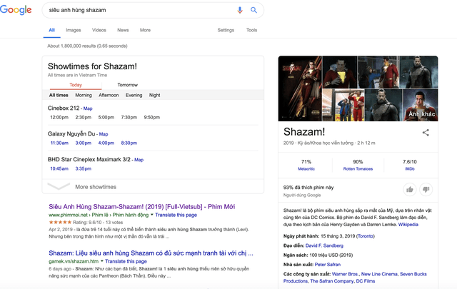 Đối với Google, không khó để tìm kiếm các tựa phim đang chiếu rạp được chiếu miễn phí trên các trang phim lậu như bộ phim "Siêu anh hùng Shazam-Shazam" đang được công chiếu tại các cụm rạp trong nước xuất hiện đầy rẫy trên các trang phim lậu. Khi gõ tìm kiếm phim, top đầu tiên thuộc về trang phim lậu lớn nhất Việt Nam hiện nay là phimmoi.net với bộ phim được quay lén. Trong video này chứa ít nhất 2 quảng cáo TVC đầu phim, chưa kể các banner quảng cáo phía trên, đem về khoảng lợi nhuận không hề nhỏ.
