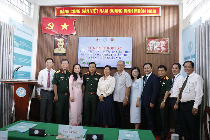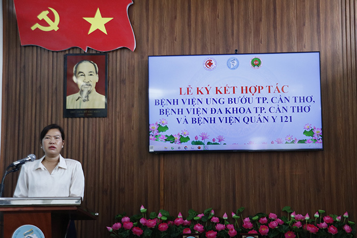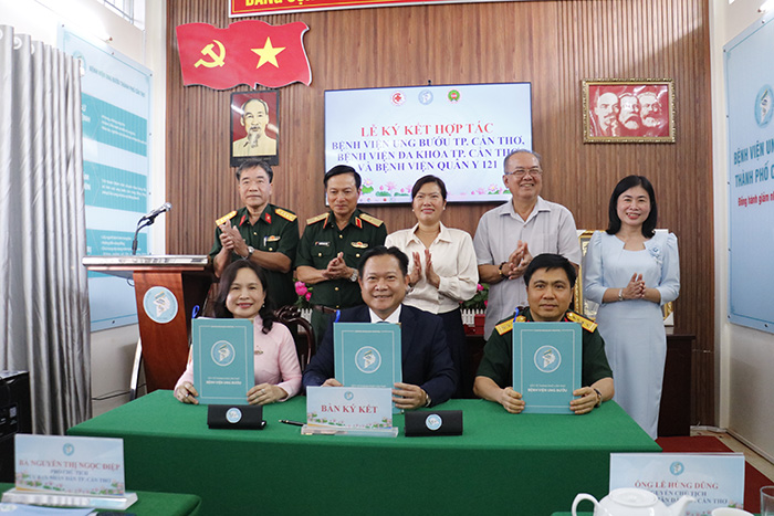 Phát biểu tại lễ ký kết, TS.BS Võ Văn Kha – Giám đốc Bệnh viện Ung bướu (BVUB) TP.Cần Thơ bày tỏ: “Việc hợp tác giữa 3 BV là một sự kiện rất đặc biệt của ngành y tế TP, nhằm khai thác hiệu quả nguồn lực giữa các cơ sở y tế. BVUB Cần Thơ chuyên về lĩnh vực ung bướu, tuy nhiên bệnh này liên quan tới tất cả các chuyên khoa khác, đặc biệt là nội khoa, ngoại khoa, hồi sức cấp cứu. Do đó sự tiếp sức của BV Đa khoa TP.Cần Thơ và BV Quân y 121 sẽ giúp rất nhiều cho BV chúng tôi”.