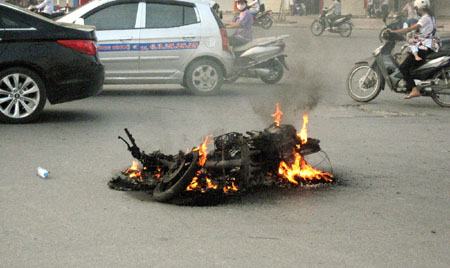 Theo một số nhân chứng, vào khoảng thời gian trên, hai nam thanh niên đi trên chiếc xe hiệu Honda Air Blade theo hướng Nguyễn Trãi – Ngã Tư Sở, đến đúng ngã tư vành đai 3, chiếc xe bỗng dưng phát ra tiếng nổ nhỏ. Ngay sau đó, từ động cơ xe, khói bắt đầu bốc ra khét lẹt.