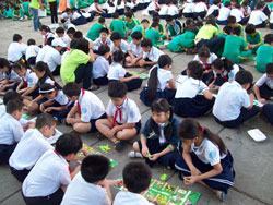 Trò chơi tập thể như thế này chỉ cần tổng phụ trách Đội tổ chức là được, không cần hiệu trưởng đứng ra lo. Ảnh: T.Tri