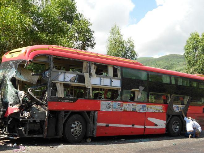 Ôtô khách còn lại cũng bị nát hết phần đầu