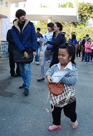 Dù tất cả TS đều bận rộn lo làm thủ tục và nhanh chóng vào đúng phòng thi để tập trung cho “đợt sát hạch” đầu đời, song ai cũng đều ngạc nhiên dừng lại ít phút để gặp gỡ, trò chuyện và không khỏi cảm phục trước một người bạn “đồng hành”, chỉ cao hơn 1m – TS “tí hon” Trần Thị Hải.