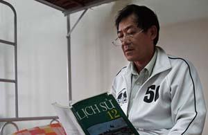 Ông Nguyễn Văn Hoàng đang tự ôn kiến thức môn lịch sử