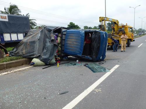 Trưa ngày 17.6, trên QL51 đoạn qua xã An Hòa, TP.Biên Hòa (Đồng Nai), chiếc xe tải mang biển kiếm soát 60C-059.78 do tài xế Võ Văn Cường (28 tuổi, ngụ Quảng Bình) điều khiển đang lưu thông theo hướng từ Đồng Nai về Vũng Tàu thì bị mất lái khiến xe tải lật nhào nằm lên dải phân cách.