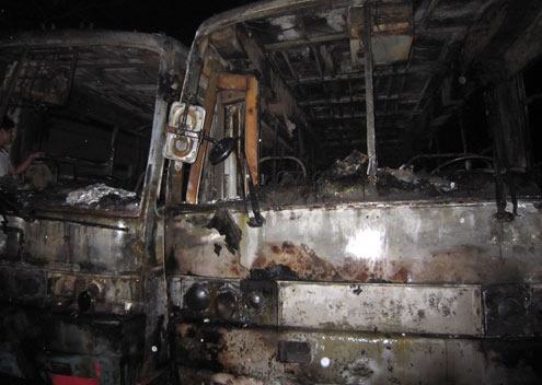 Hai xe khách bốc cháy trong đêm