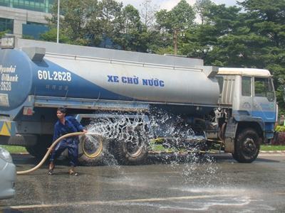 | Xe chở nước xịt rửa mặt đường nơi xảy ra sự cố. |