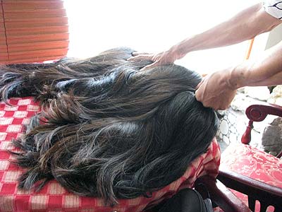 Tôi bàng hoàng với những con số mà anh Hải đưa ra. Mỗi bộ tóc dài bình quân nặng chưa đến 200 g. Vậy mỗi tháng có đến hàng ngàn mái tóc dài của phụ nữ VN vượt biên!