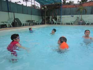 Các em nhỏ mắc bệnh xương thủy tinh tập bơi tại Trung tâm Kim Cương