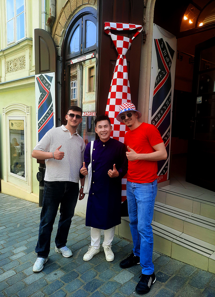 Du khách tại Croatia thích thú chụp ảnh cùng Đoan Trường trong chiếc áo dài