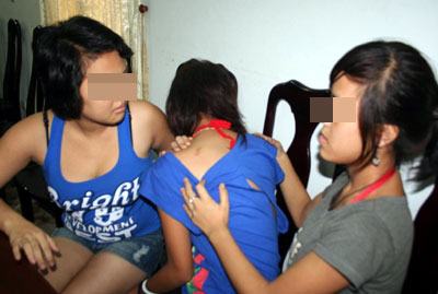 Các nạn nhân được giải cứu khỏi tổ quỷ mại dâm (ảnh: Thế Cường).