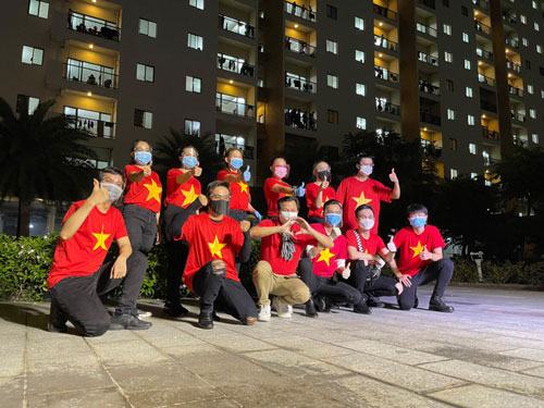 Đội văn nghệ Trung tâm Ca nhạc nhẹ TP HCM biểu diễn ở một khu cách ly tại TP Thủ Đức (TP HCM). Ảnh: Kim Hoa