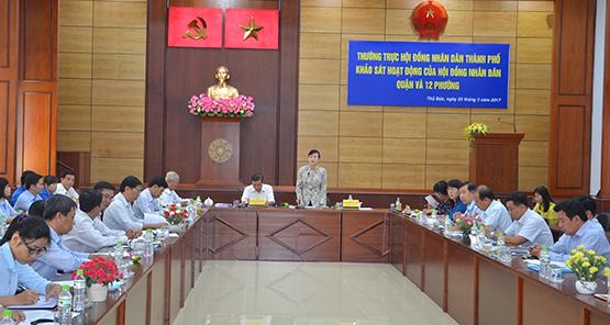 | Chủ tịch HĐND TP Nguyễn Thị Quyết Tâm làm việc với HĐND Q.Thủ Đức ngày 23-3. Ảnh: L.Hồ |