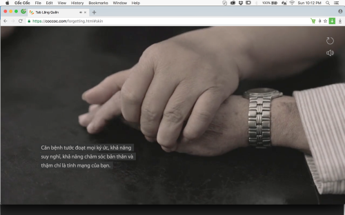 Do đó, Cốc Cốc đã đổi tên Tab ẩn danh sang “Tab lãng quên” và giới thiệu đến những người đang sử dụng chế độ này một thông điệp vô cùng xúc động về căn bệnh Alzheimer’s, với hy vọng mang đến cho cộng đồng những hiểu biết sâu sắc hơn về một căn bệnh nghiêm trọng và dai dẳng, không những ảnh hưởng đến bản thân người bệnh mà còn đến những người chăm sóc họ. Người dùng cũng có thể tìm hiểu thêm thông tin về cănh bệnh này và cách chăm sóc người bệnh chỉ với một cú nhấp chuột đơn giản.