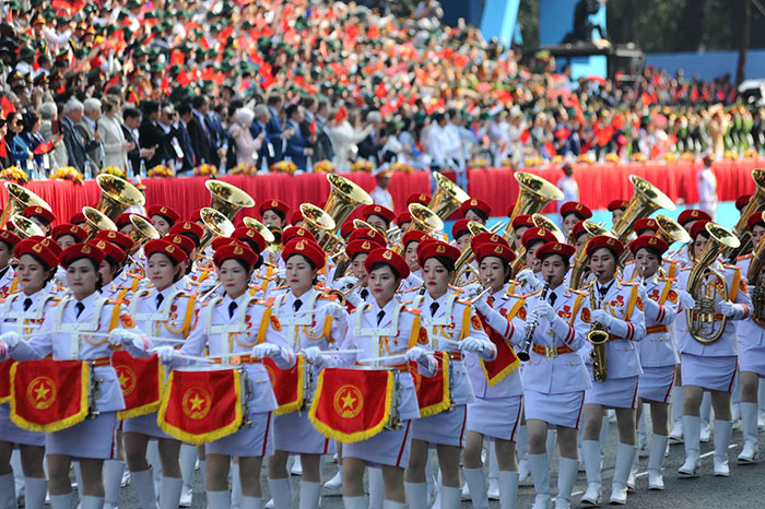 Các khối diễu hành chỉnh tề, hoành tráng – là biểu tượng của sự đoàn kết, sức mạnh và niềm tự hào dân tộc.