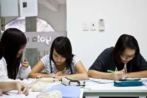 Học viên của Học viện Yola trao đổi bài |