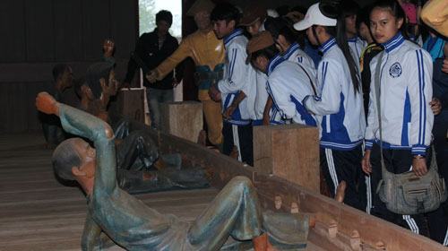 Các bạn học sinh tham quan nơi giam giữ tù chính trị – Ảnh: Đức Lập