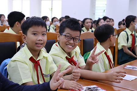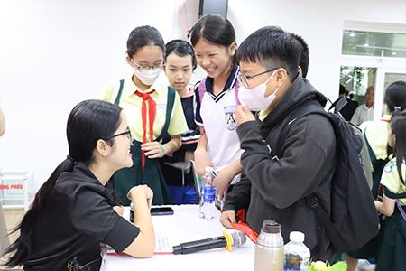 Các học sinh rất hào hứng với chương trình, đặt ra nhiều câu hỏi liên quan đến phương pháp học tốt môn tiếng Anh để làm hành trang trở thành những công dân toàn cầu. Em Nguyễn Bảo Ngọc – HS Trường THCS Trưng Vương (TP.Đà Nẵng) chia sẻ: “Em dành rất nhiều thời gian học tiếng Anh nhưng việc ghi nhớ từ vựng không hề dễ dàng. Làm thế nào để nhớ được lâu, áp dụng đúng ngữ cảnh vẫn là vấn đề khó đối với em”. Còn với Nguyễn Thùy Trang – HS Trường THPT Phan Thành Tài chia sẻ: “Em muốn học tiếng Anh thật tốt để thi IELTS. Em có tham gia vài khóa học thêm nhưng chưa thật sự hiệu quả như mong muốn. Lần đầu tiên có một chương trình với chuyên gia trực tiếp tư vấn tại trường, em rất vui và mong qua buổi ngoại khóa này em sẽ có thêm kinh nghiệm và nắm được phương pháp phù hợp với mình để việc học tiếng Anh được hiệu quả”.
