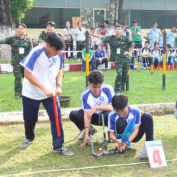 Học sinh tận dụng sản phẩm tái chế để sáng tạo tên lửa nước