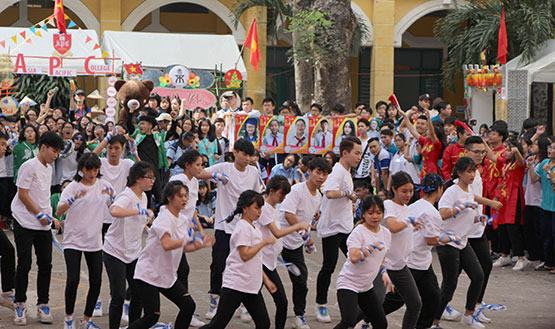 Hoạt động nhảy cổ động tại Cụm trại 1. Ảnh: N.Định