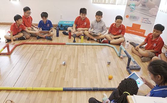 Học sinh một trường quốc tế tại TP.HCM thực hành lập trình robot Sphero trong một buổi học của CODE4Schools