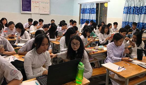 Kỳ kiểm tra giữa học kỳ 1 năm học 2019-2020 của hơn 1.000 học sinh Trường THPT Trần Hữu Trang (Q.5, TP.HCM) đã diễn ra với hình thức hoàn toàn khác lạ. Theo đó, thay vì làm bài kiểm tra trên giấy, toàn bộ học sinh trong trường đã làm bài trên điện thoại di động và máy tính. Hình thức này được nhà trường áp dụng với 10 bộ môn, trừ ngữ văn, thể dục và quốc phòng. Mỗi bộ môn được thiết kế 3 đề dựa trên ma trận, mỗi lần kiểm tra có 2 đề, mỗi đề 8 mã.