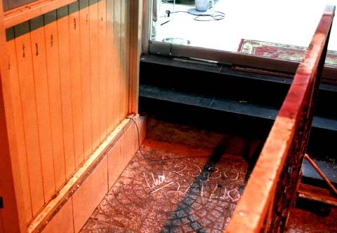 | Dây điện móc từ buồng ATM ra ngoài. Ảnh: An Nhơn. |