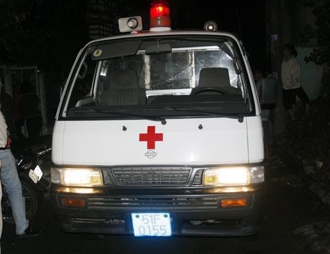 | Xe cấp cứu đưa thi thể em Khánh về nhà. Ảnh: An Nhơn. |