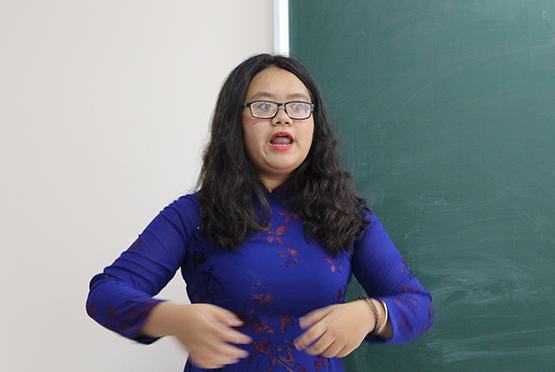 | Trần Nguyễn Ngọc Diệp (lớp 12A8) đứng lớp dạy môn ngữ văn |