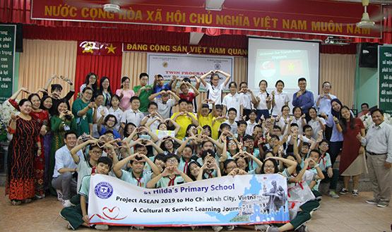 Trường THCS Hà Huy Tập (Q.Bình Thạnh) cũng vừa đón thành công đoàn HS và giáo viên đến từ Trường St. Hilda’s Primany, Singapore. Đây là lần đầu tiên cô và trò nhà trường tiếp đón “khách nước ngoài”. Trong khuôn khổ 2 buổi giao lưu, 31 HS của trường đã “trổ tài” giới thiệu văn hóa truyền thống, bản sắc Việt Nam đến bạn bè quốc tế. Từ những món ăn như phở, bánh bột chiên, chả giò đến nón lá, áo dài và các trò chơi dân gian đậm bản sắc Việt như bịt mắt đập heo…