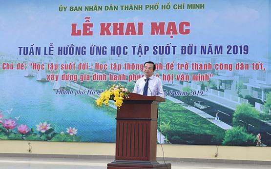 Đồng chí Lê Hồng Sơn – Giám đốc Sở GD-ĐT TP.HCM phát biểu tại “Tuần lễ hưởng ứng học tập suốt đời” cấp thành phố năm 2019