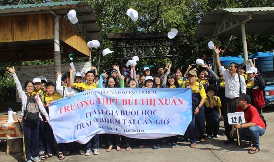 Thực hiện kế hoạch hoạt động trải nghiệm sáng tạo trong trường THPT năm học 2016-2017 của Sở GD-ĐT TP.HCM nhằm trau dồi cho học sinh kiến thức thực tiễn, tạo không khí “học mà chơi, chơi mà học”, mới đây Trường THPT Bùi Thị Xuân đã tổ chức cho hơn 600 em khối 11 học tập tại khu rừng phòng hộ Cần Giờ – Khu du lịch Dần Xây, tích hợp ba môn học: lịch sử – địa lý – giáo dục công dân.