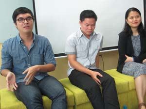 Ba cựu du HS trong buổi nói chuyện |