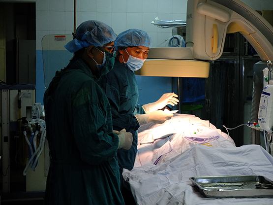 Các bác sĩ đang tiến hành phẫu thuật. Ảnh: T.Nhung