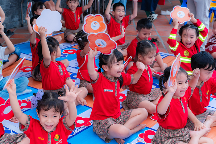 Hội thi được thiết kế với nhiều nội dung phong phú, phù hợp với lứa tuổi mầm non. Ở phần đầu, học sinh được xem tiểu phẩm tình huống giao thông và trả lời câu hỏi để nhận quà, qua đó giúp các em nhận diện hành vi đúng – sai khi tham gia giao thông. Tiếp đó, phần thi “Rung chuông vàng” được tổ chức theo từng khối lớp với hình thức trắc nghiệm bằng hình ảnh biển báo, tạo sự hứng thú và dễ tiếp thu cho trẻ.
