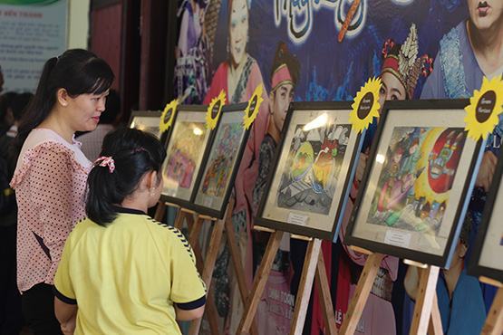 Ph huynh và thí sinh xem trin lãm nhng tác phm đt gii thưng