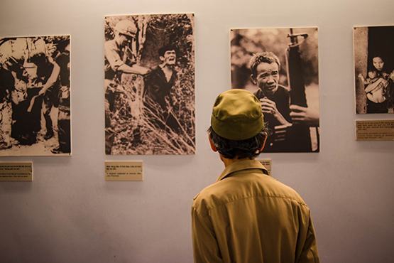 | Khoảnh khắc người lính thăm Bảo tàng Chứng tích chiến tranh. Ảnh: HoSG |