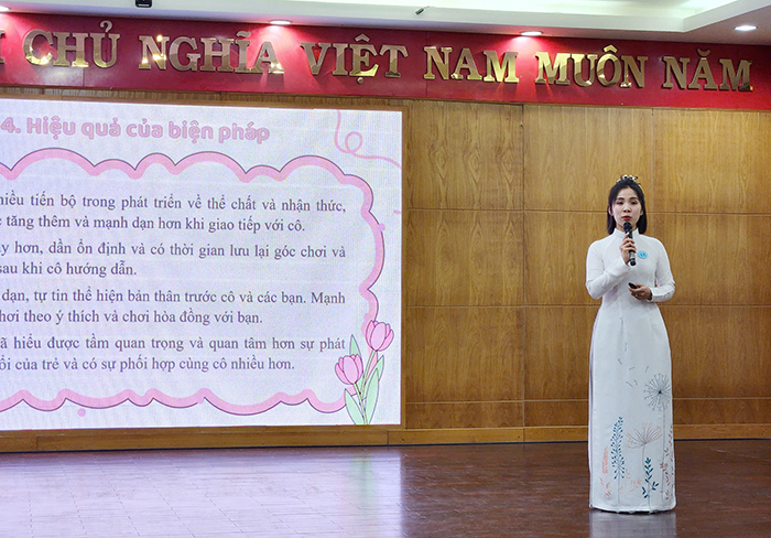 “Những nỗ lực của các giáo viên mầm non về năng lực sư phạm, về đổi mới phương pháp giáo dục được thể hiện trong hội thi sẽ đưa mỗi hoạt động thực sự là một sản phẩm tư duy theo định hướng phát triển, giáo viên áp dụng nhiều hình thức tổ chức khác nhau đảm bảo theo năng lực trẻ, đáp ứng mục tiêu của Chương trình giáo dục mầm non” – bà Châu đánh giá.