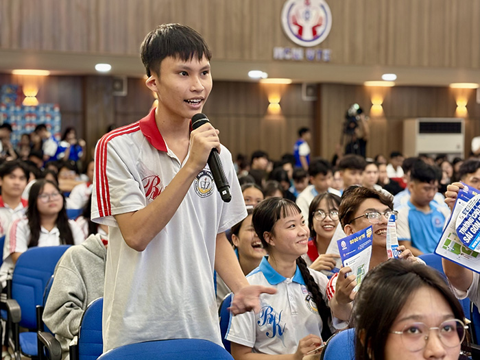 Trong phần tư vấn, thí sinh đặt nhiều câu hỏi liên quan đến những thay đổi trong kỳ tuyển sinh năm 2026, ngành nghề mới, đặc biệt là cơ hội việc làm trong bối cảnh thị trường lao động hội nhập quốc tế.