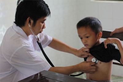 Các bác sĩ đang khám bệnh cho trẻ