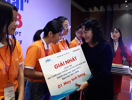 Tham dự và phát biểu tại lễ trao giải, Thứ trưởng Bộ GD-ĐT Nguyễn Thị Nghĩa, cho biết: “Để làm tốt nhiệm vụ GD ATGT trong nhà trường, cần thiết có sự phối hợp, cộng tác với các bộ, ban ngành, doanh nghiệp và cộng đồng dân cư. Nhiều năm qua, được sự quan tâm của Ủy ban ATGT quốc gia, dần khẳng định được tính thực tiễn cũng như sự cần thiết của việc GD, xây dựng cho các em HS văn hóa, thói quen tham gia giao thông văn minh, an toàn từ khi còn ngồi trên ghế nhà trường”.