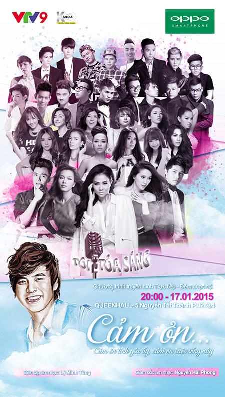 Liveshow đặc biệt của Tôi Tỏa Sáng do Trung tâm Truyền hình Việt Nam tại TP.HCM và Công ty Truyền thông Khang phối hợp thực hiện với sự đồng hành của nhãn hàng điện thoại Oppo Smartphonesẽ diễn ra vào lúc 20h thứ Bảy, ngày 17/1/2015 và được truyền hình trực tiếp trên kênh VTV9, VTV Huế, VTV Phú Yên, VTV Lâm Đồng…