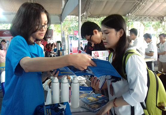 | Sinh viên trao đổi thông tin việc làm với đại diện doanh nghiệp tại “Ngày hội việc làm – Job Fair” |