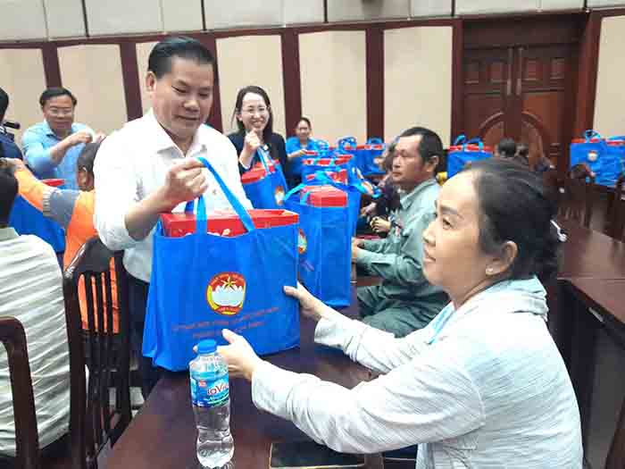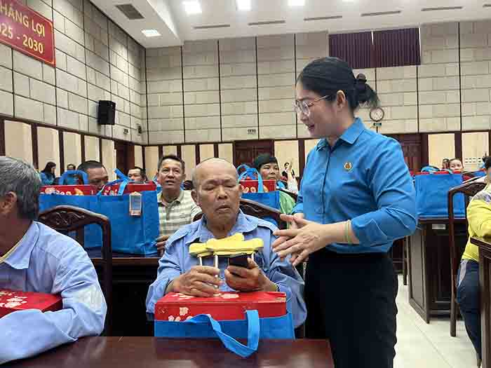 Bên cạnh việc nhận thẻ bảo hiểm y tế, đoàn viên, người lao động còn được nhận quà Tết bằng hiện kim và hiện vật.