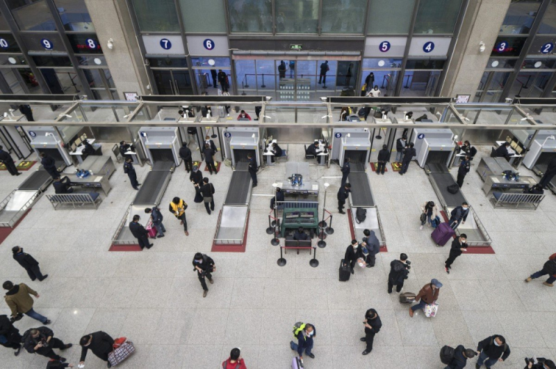 Hành khách bắt đầu mua vé tàu hỏa ở ga Vũ Xương thành phố Vũ Hán – Ảnh: Xinhua