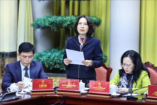 Văn phòng Chủ tịch nước tổ chức họp báo công bố Lệnh của Chủ tịch nước công bố 13 luật. Ảnh: Minh Đức/TTXVN